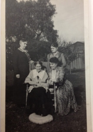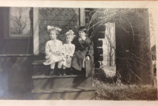 * The other shows the two granddaughters sitting on steps with a cousin, Leah Stratton.