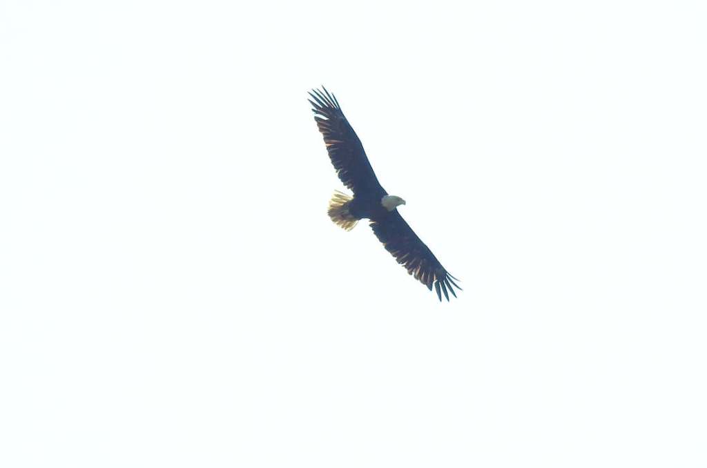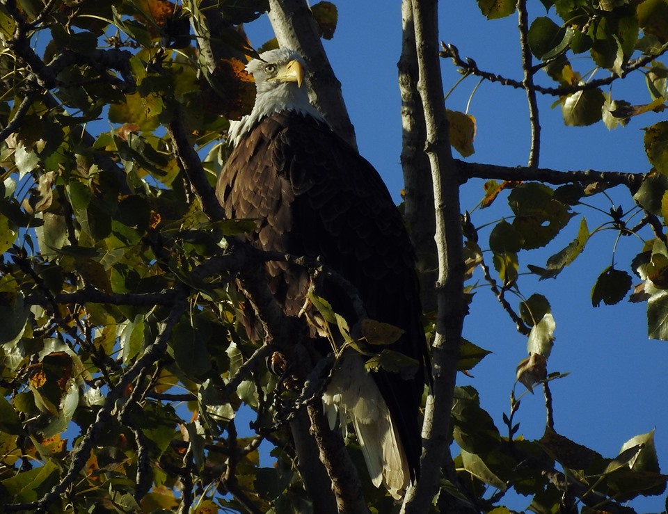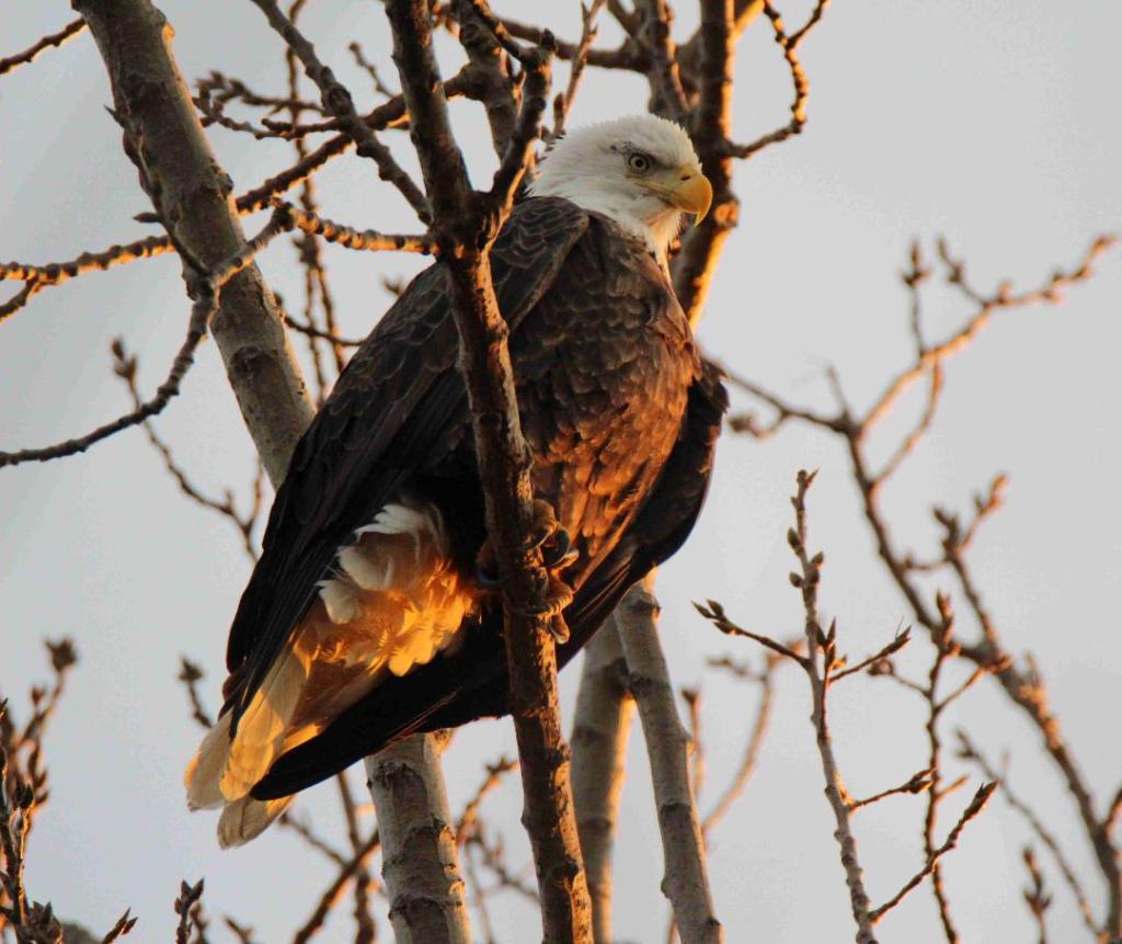 Bald Eagle Bald Eagle creeped feathers shadowed, banana nose Perched on leaning tree