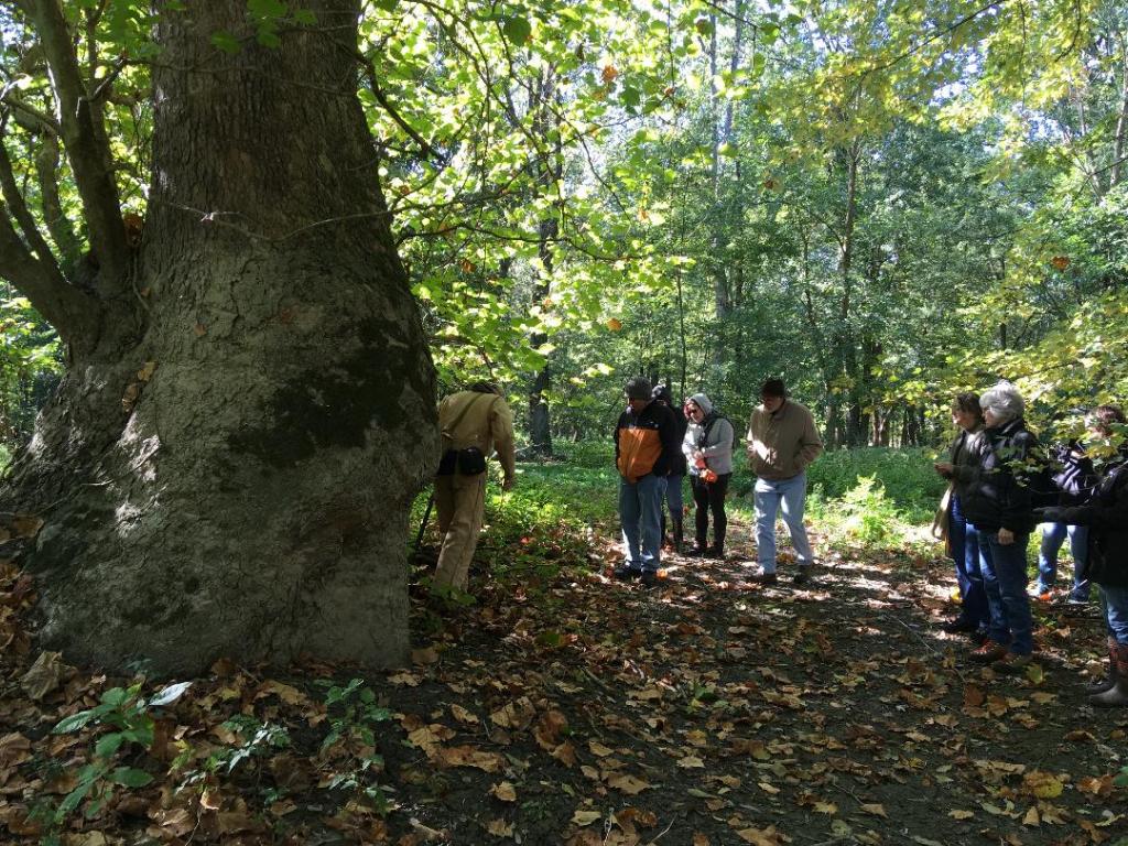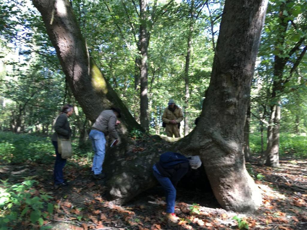 Curt leads the group to the first giant sycamore tree. This tree would have been there in Gene Stratton-Porter’s time.
