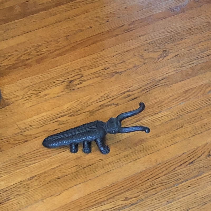 A cricket of iron with two forward sprouts,