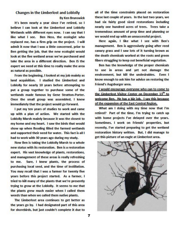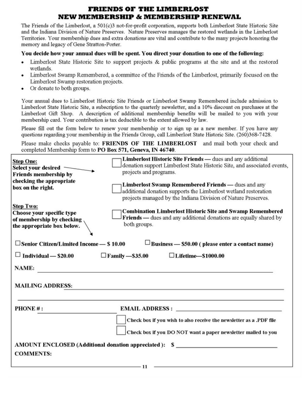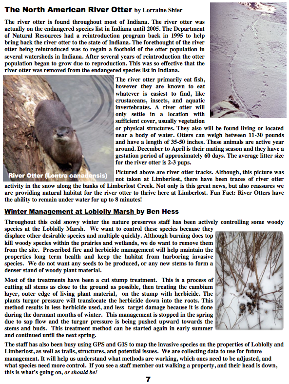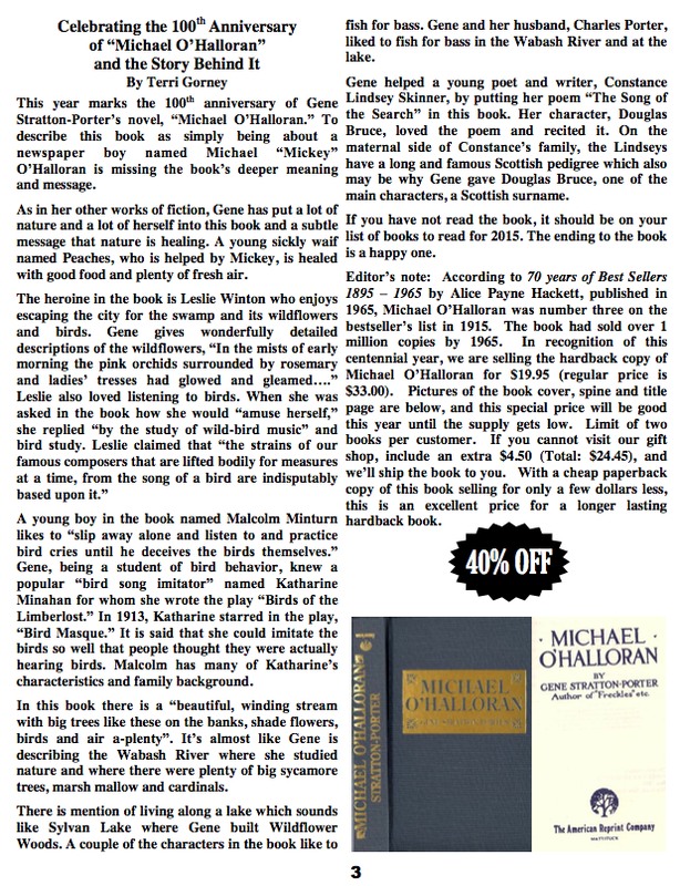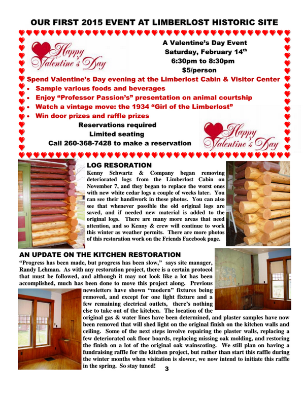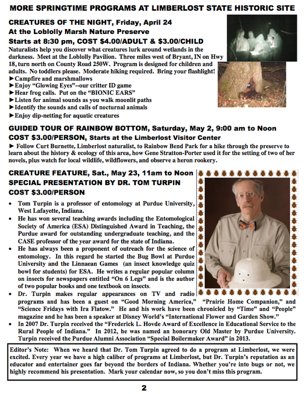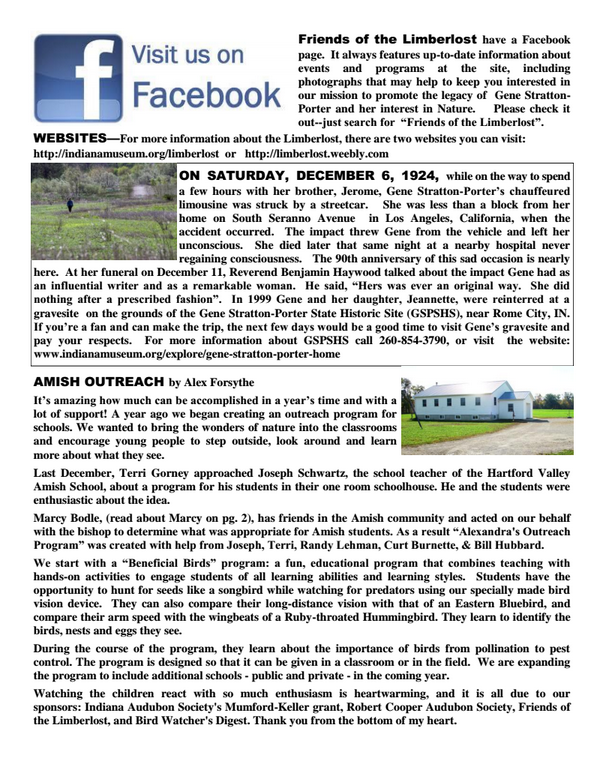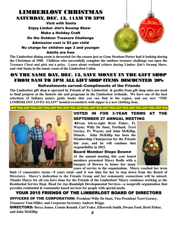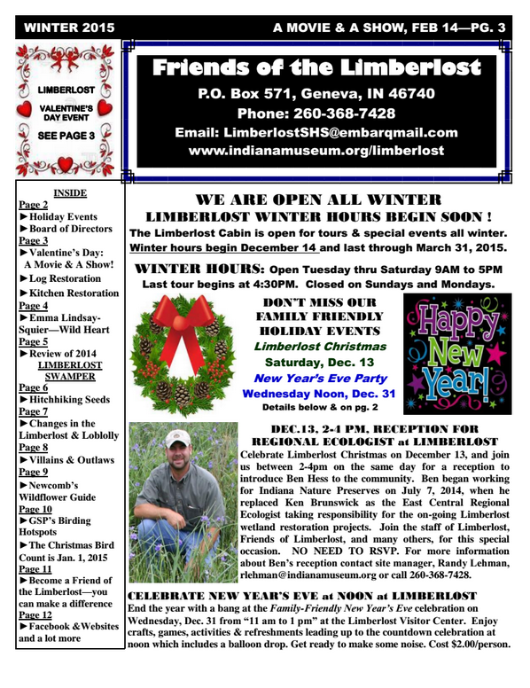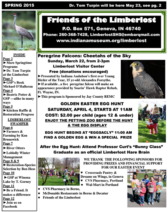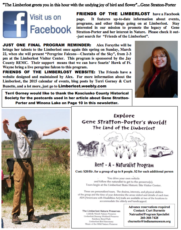 News Spring 2015 Friends of the Limberlost Newsletter Winter 2014-2015 Friends of the Limberlost Newsletter
