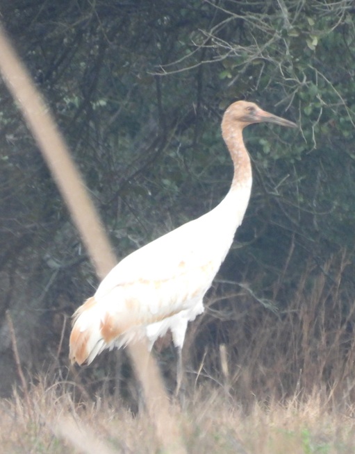 The Whooping Crane is a close relative of the Sandhill Crane, Antigone canadensis. They both belong to the family Gruidae and are North America’s only two native crane species. They often migrate together. Whooping Cranes often pass through Indiana and can be viewed at Goose Pond Fish and Wildlife Area near Linton, Indiana. Goose Pond offers a Whooper Wednesday Walk every Wednesday from November to February. They meet at the visitor center with a representative from the International Crane Foundation and walk around the property looking for the large white migrating bird.